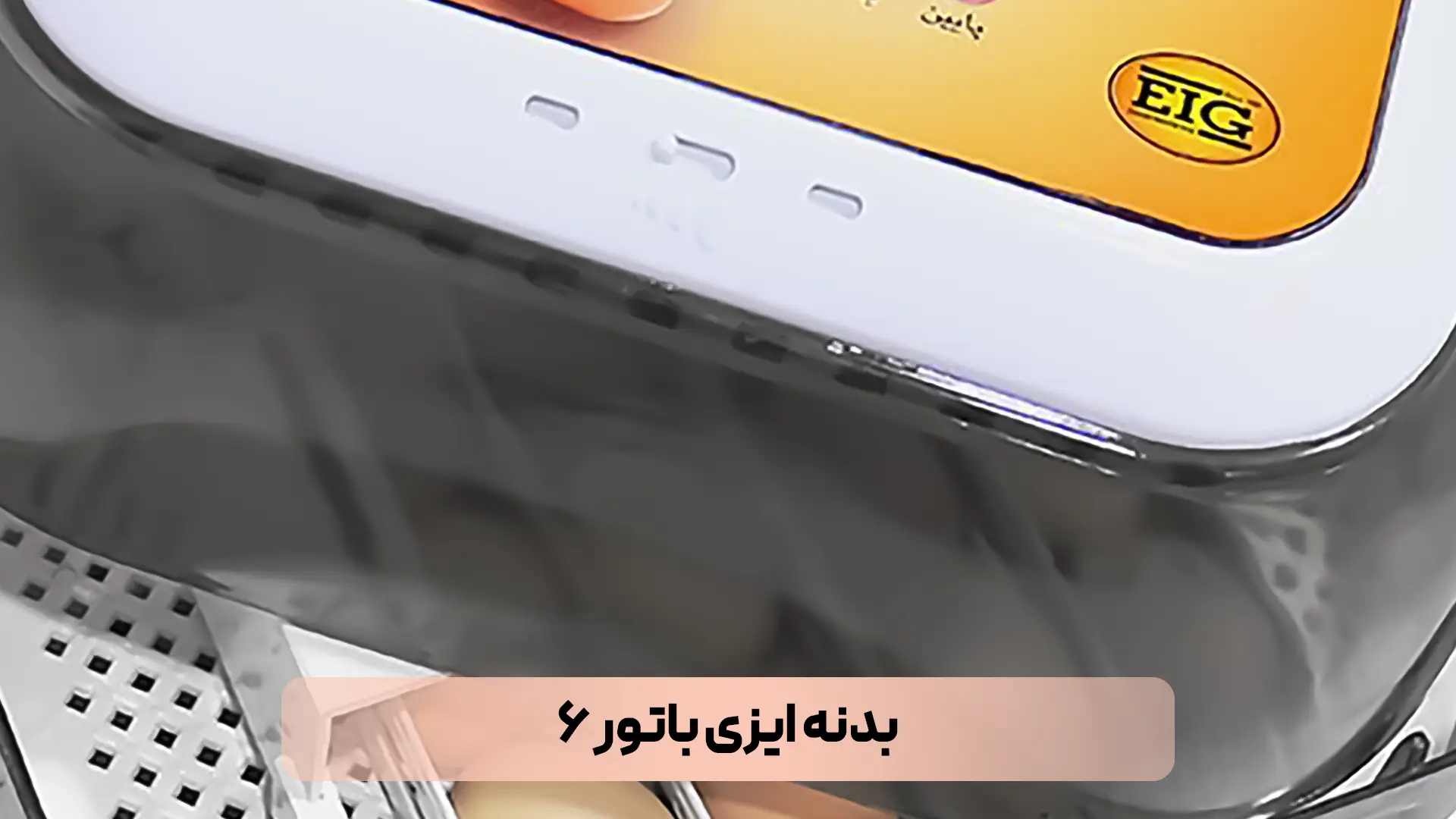 بدنه ایزی باتور ۶ از دو بخش درب و کفه دستگاه تشکیل شده است. درب این محصول به گونه ای ساخته شده که علاوه بر قابلیت دید داخلی ، از ورود اشعه های مضر به داخل محفظه جلوگیری میکند. کفه دستگاه نیز از ABS ساخته شده و دوام بسیار بالایی در مقابل ضربه و خط و خش دارد. به جهت سهولت در جداسازی درب از کفه ، در دو طرف محصول دستگیره هایی تعبیه شده است.