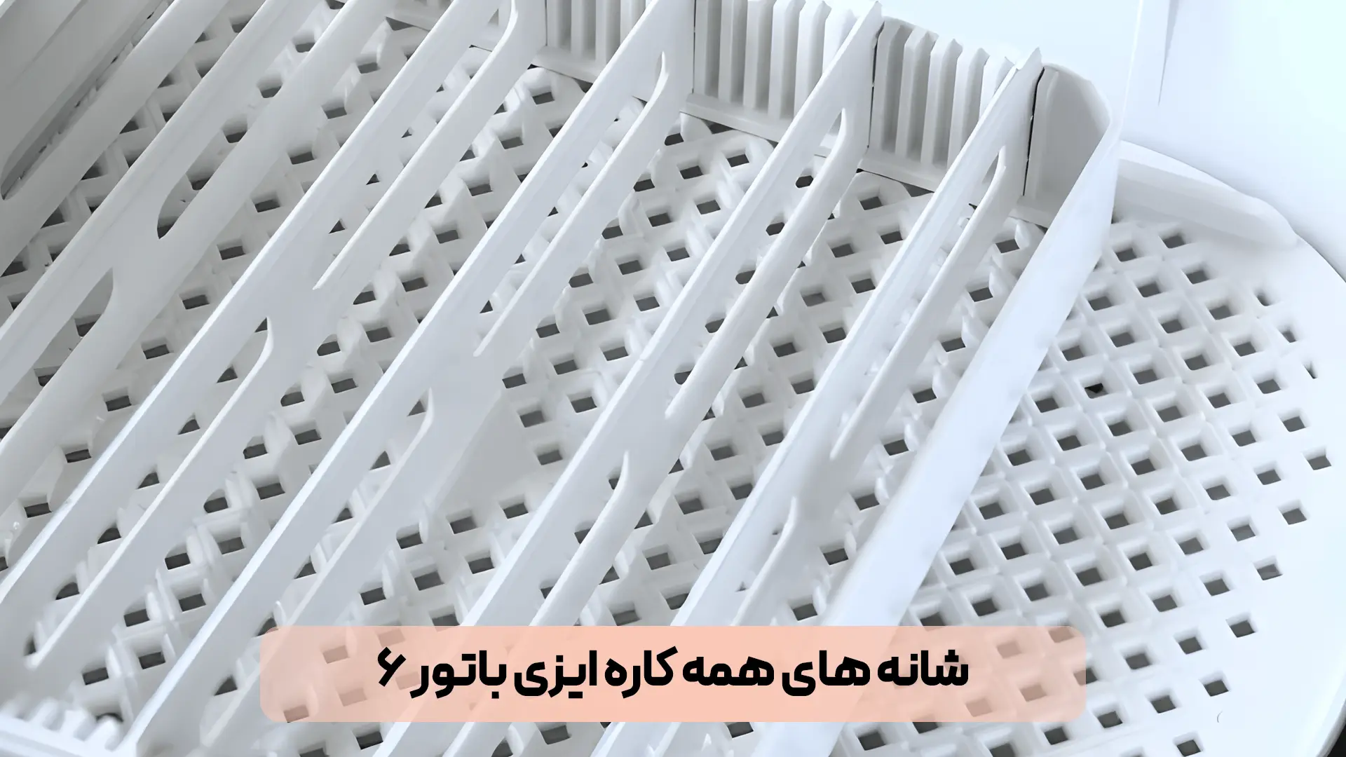 شما به کمک این محصول میتوانید با داشتن یک دست شانه از تخم نطفه دار تمامی پرندگان جوجه کشی کنید. شیوه کار بدینصورت است که شانه های دستگاه با توجه به عرض هر تخم قابلیت تنظیم داشته و بدین صورت میتوان فضا را کم و زیاد کرد. بعنوان نمونه اگر شما داخل ایزی باتور 6 تخم مرغ قرار دهید ، فضای بین شانه ها از زمانی که شما داخل دستگاه تخم بلدرچین قرار میدهید بیشتر بوده و در نتیجه آن ظرفیت کلی دستگاه متغیر خواهد بود. بعلت سایزیک بودن شانه های ایزی باتور 6 ، داخل دستگاه میتوان هر نوع تخم نطفه دار قرار داد. « بغیر از شترمرغ »