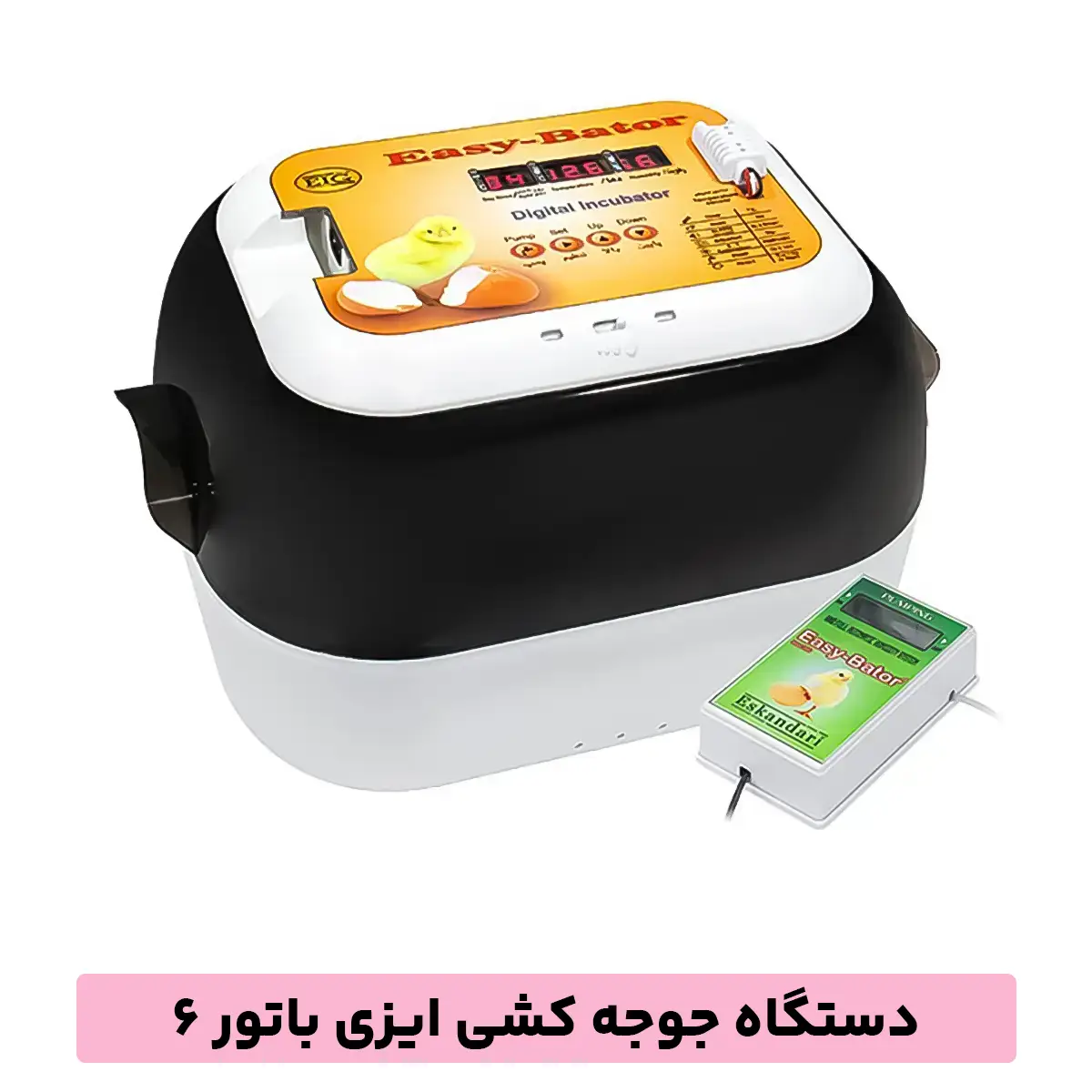 در صورتی که قصد شما از انجام فرایند جوجه کشی ، کسب بالاترین راندمان ممکن است پیشنهاد ما استفاده از دستگاه جوجه کشی ایزی باتور ۶ می باشد. طراحی ایزی باتور ۶ به گونه ای انجام شده تا مصرف کننده بدون دغدغه بتواند نسبت به انجام فرایند جوجه کشی اقدام کند. یکی از خصوصیاتی که این محصول را از سایر محصولات موجود در سایت متمایز میکند داشتن پمپ آب است. پمپ آب سبب میشود تا شما بدون نیاز به باز کردن درب محصول بتوانید نسبت به تامین رطوبت مورد اقدام کنید. علاوه بر این این محصول قابلیت چرخش تخم های نطفه دار بصورت ۳۶۰ درجه را دارد. چرخشی که تاکنون در میان هیچ ماشین جوجه کشی ساخت ایران تعبیه نشده است.