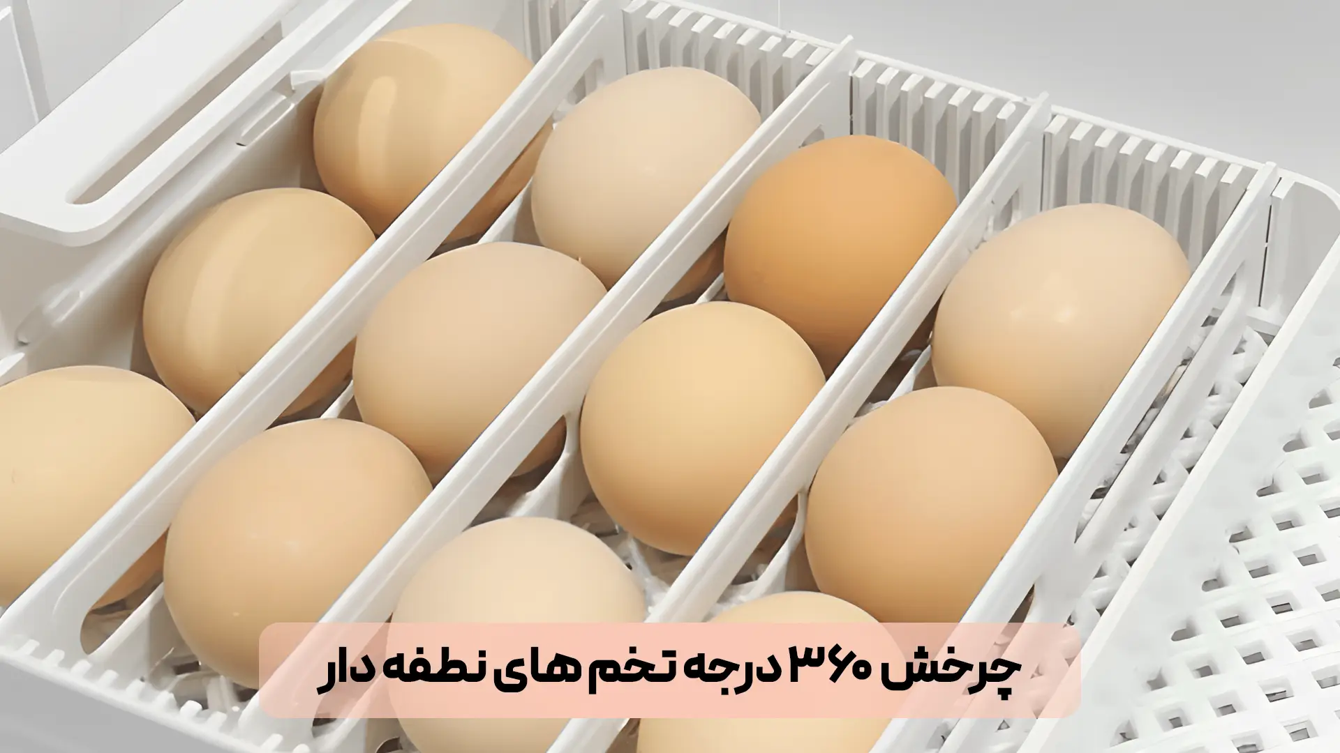 ماشین جوجه کشی ایزی باتور ۶ تخم ها را در زاویه ۳۶۰ درجه به چرخش در می آورد. این شیوه چرخش همانند مرغ مادر در طبیعت بوده و از این رو استاندارد ترین مقدار چرخش تخم های نطفه دار می باشد. عموماْ ماشین های جوجه کشی متداول تخم های نطفه دار را در زاویه ۹۰ درجه به چرخش در می آورند